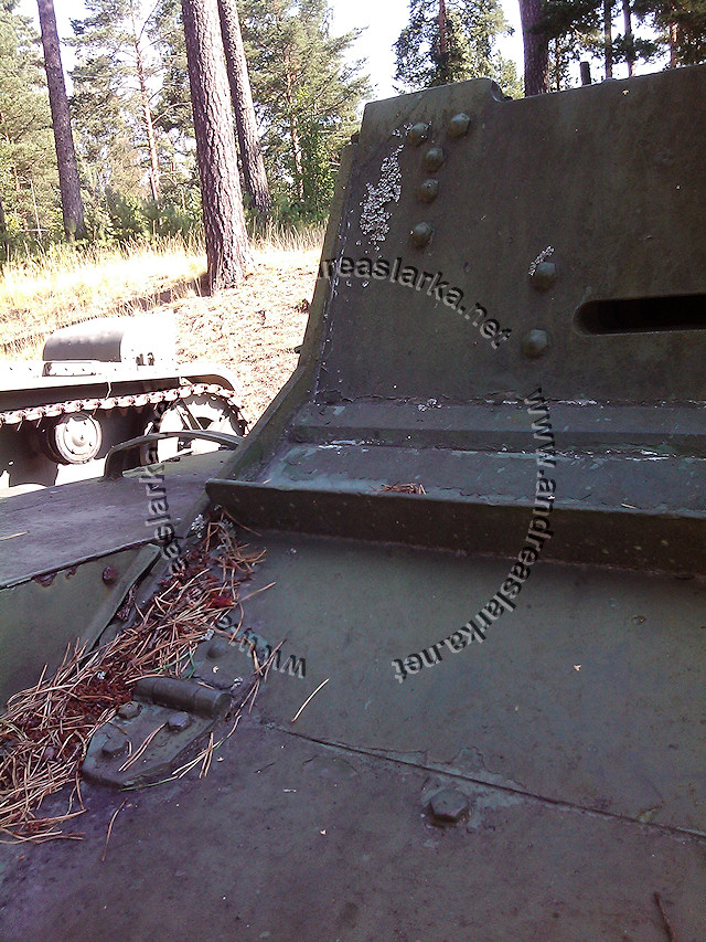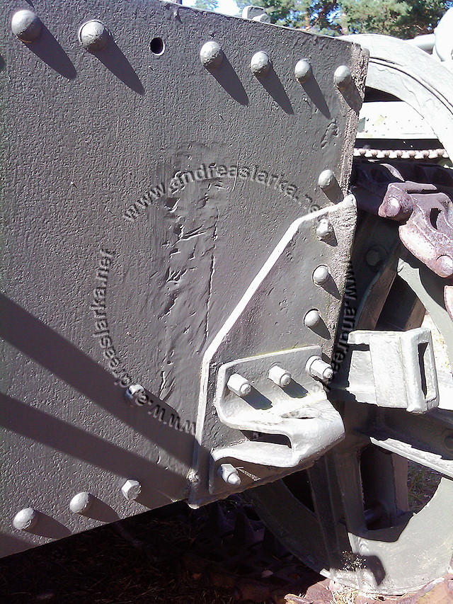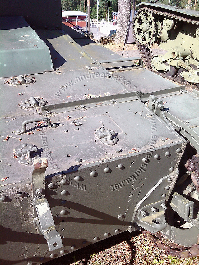 Mr. Kari Tapio sent me a batch of unsorted but excellent reference pictures of the T-26 tanks at Parola. Quite appropriate as the HobbyBoss model kits are hitting the market right now. Some of the tanks are featuring the Finnish made (ca. 1942->) rear bumber and/or Finnish mod strenghtened idler-wheels. The narrower idler wheel strenghtening plate is ca. 78-80 mm wide (1/35 = 2,2-2,3 mm), and the wider strenghtening plate is ca. 106-110 mm (1/35 = 3,0-3,1 mm). These pictures are taken at the Finnish Armour Museum in Parola, Finland by Mr. Kari Tapio. Photos copyrighted © by Mr. Kari Tapio. All rights reserved. Used with permission. Text by Andreas Lärka, Finland.