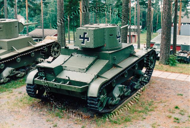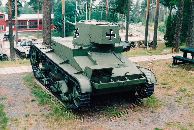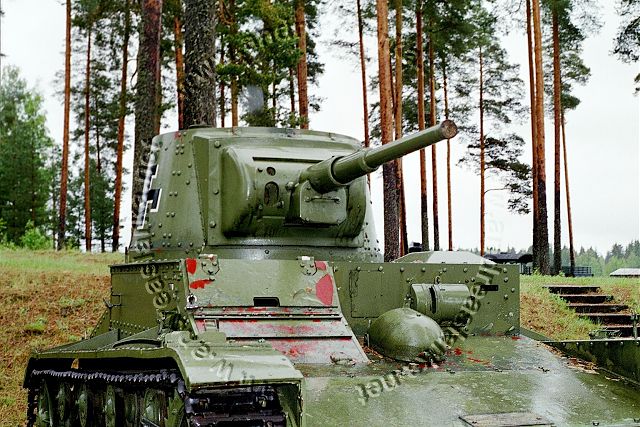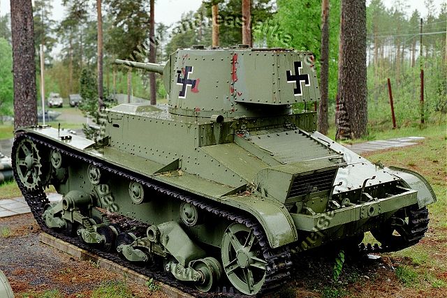 ![]() This Vickers is modified with a Soviet 45mm gun, new optics etc. making it into a T-26E. Used by the Finnish armoured forces in The Continuation War 1941 - 1944. These pictures are taken at the Finnish Armour Museum in Parola, Finland. Photos and text © Copyright by Andreas Lärka, Finland.
