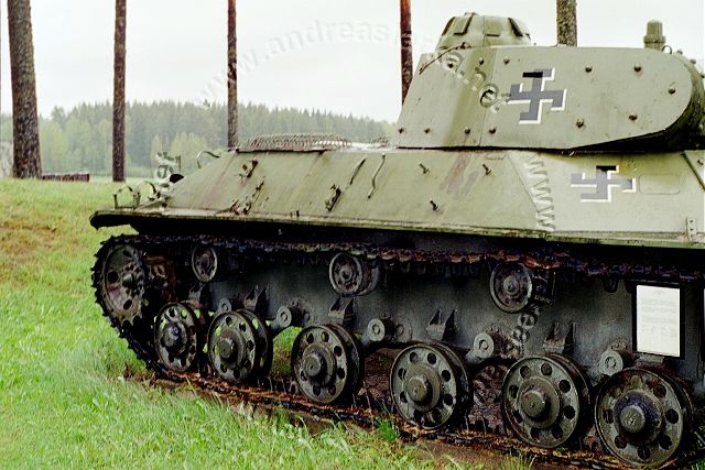 The Finnish Armoured Forces captured one of these T-50 tanks during The Continuation War. Used as as a command vehicle. These pictures are taken at the Finnish Armour Museum in Parola, Finland. Photos and text © Copyright by Andreas Lärka, Finland.