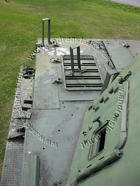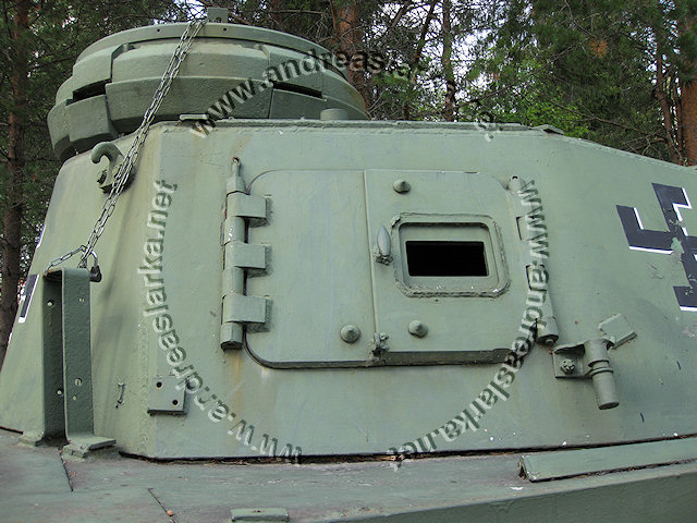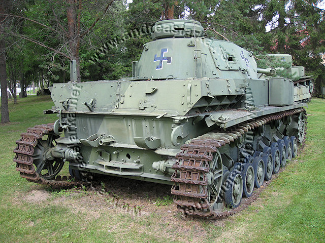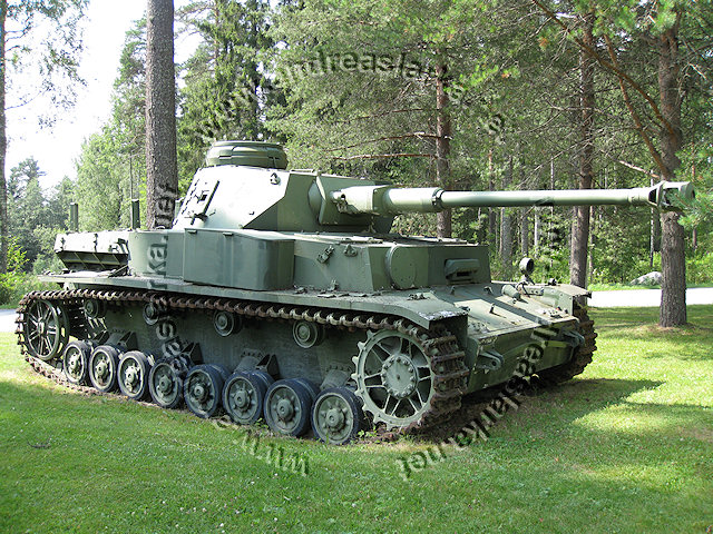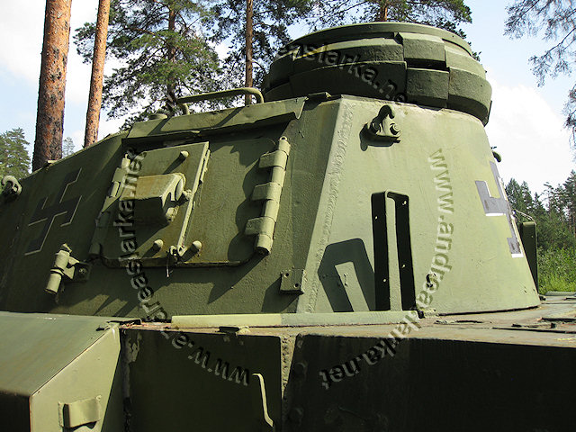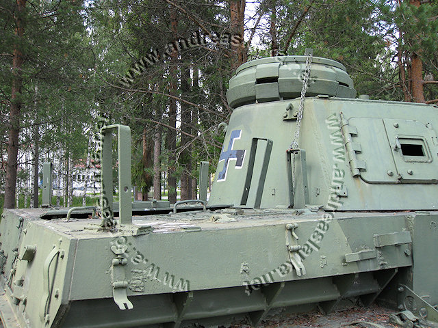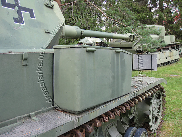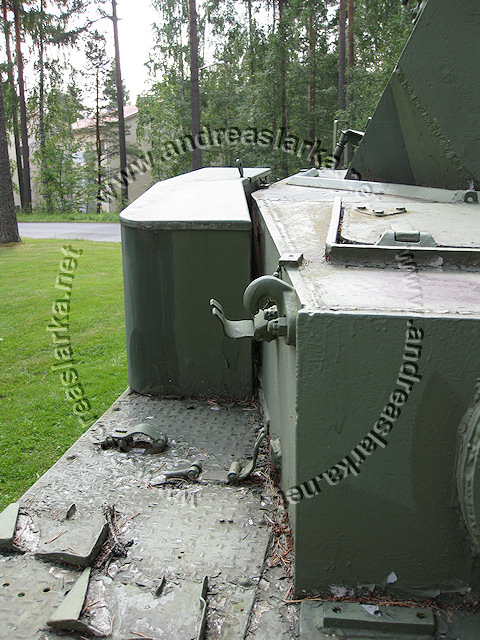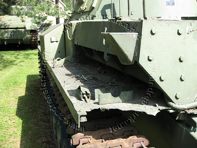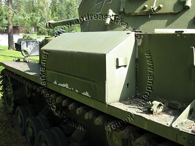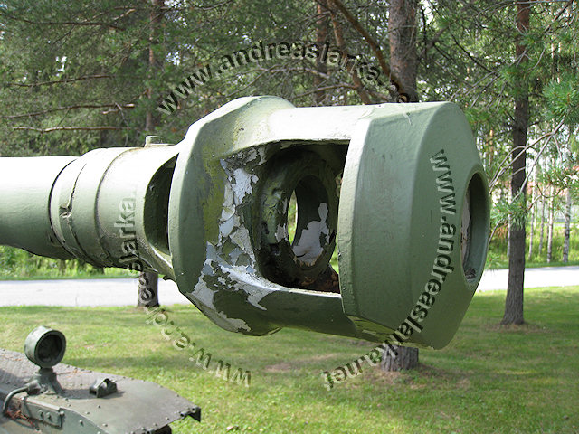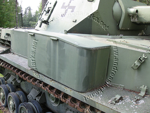 Finland bought 15 of these tanks from Germany in August of 1944. They all arrived to late to be used against the Soviets and despite beeing transported north during The Lappland War they never saw any action. This tank is in it's post-war configuration featuring a strange never-used paint-scheme. These pictures are taken in the summer of 2011 by Mr. Johnny Pedersen in Mikkeli, Finland. Photo copyrighted © by Mr. Johnny Pedersen. All rights reserved. Used with permission. |