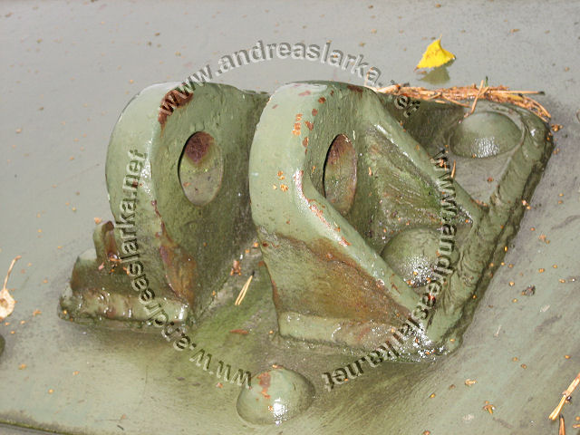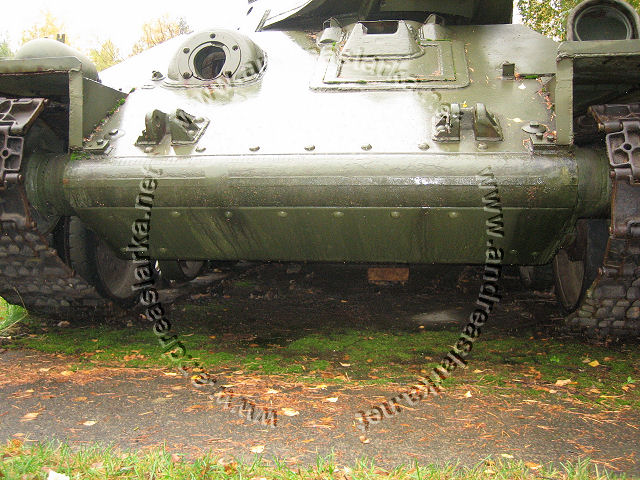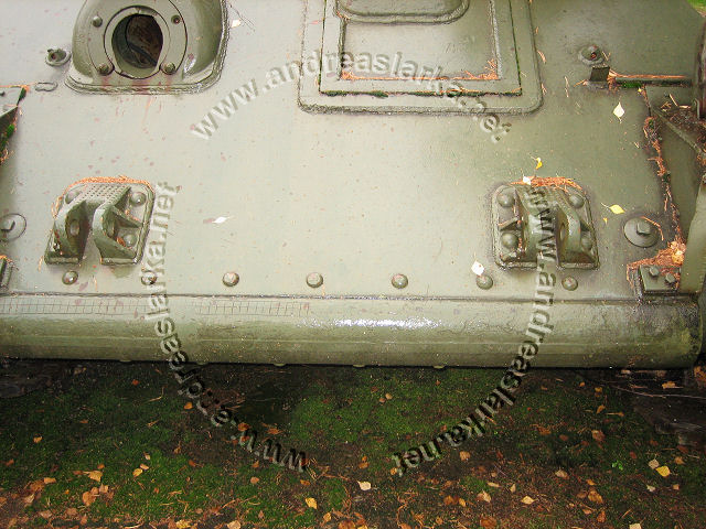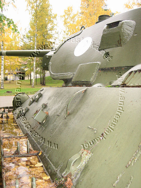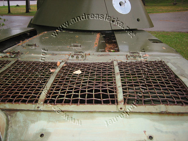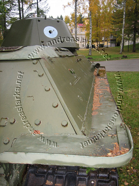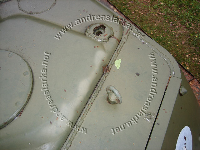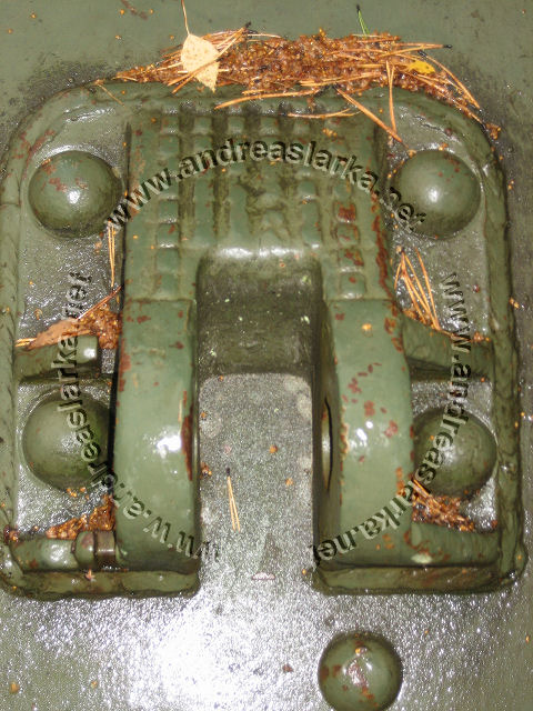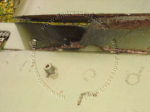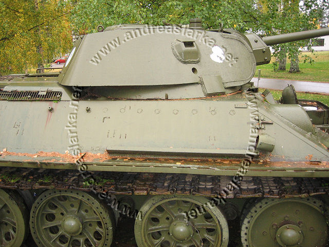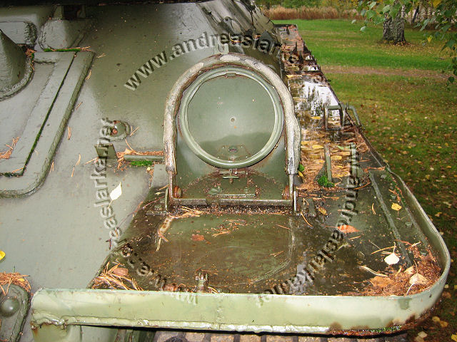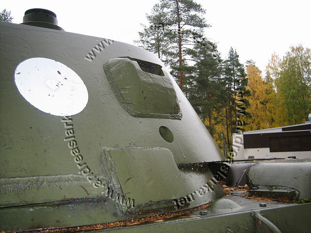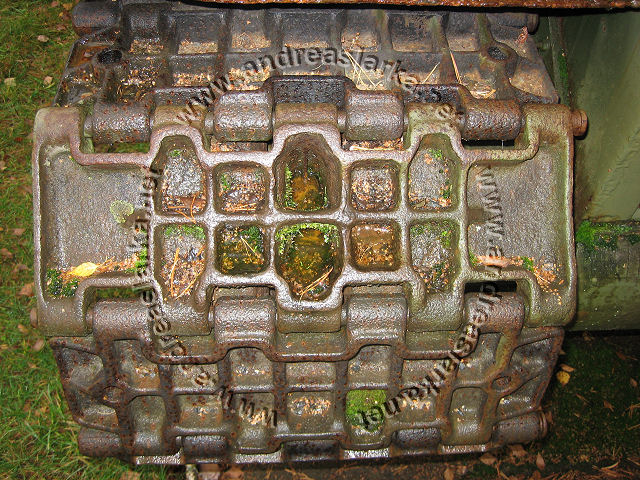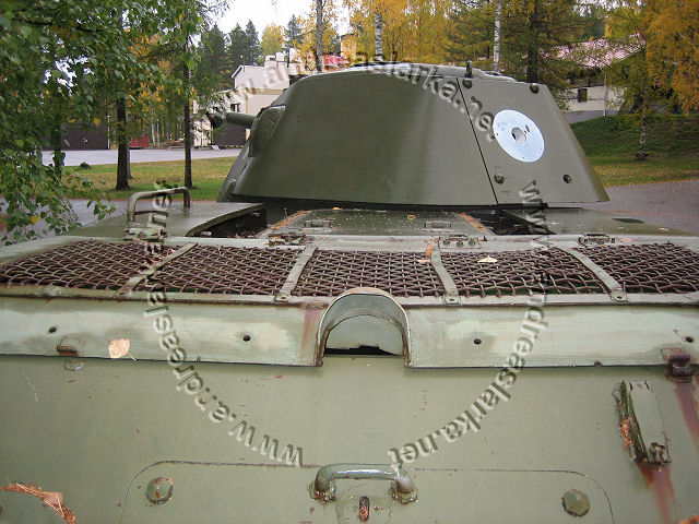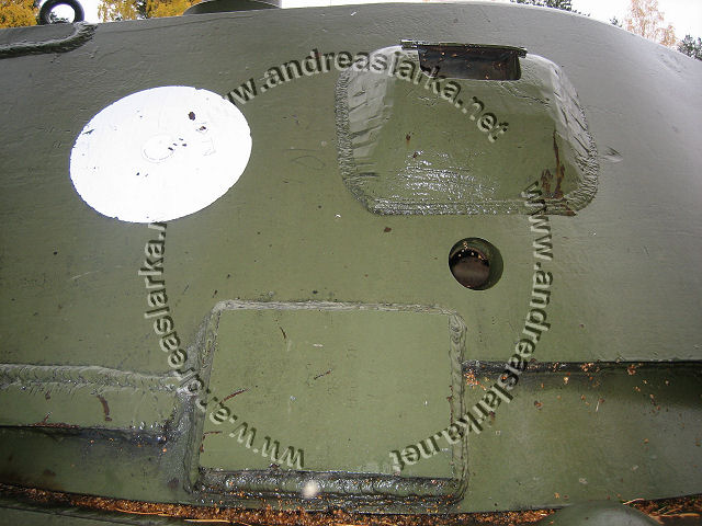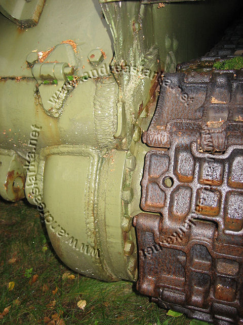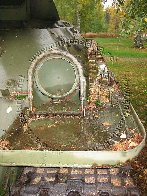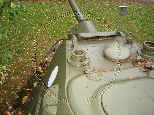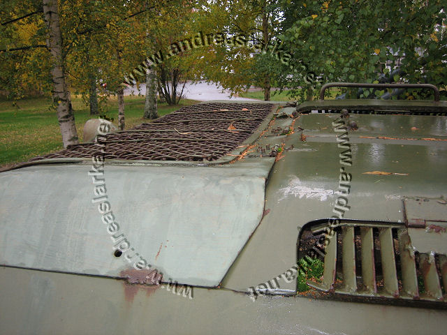 The tank is in it's post-war condition. The roadwheels, idler-wheels and the tracks have been changed. During the war the roadwheels were of the solid dish type, and the idler-wheels were the typical m1941 rubber-rimmed ones. The tracks were of the pre-1942 kinds. Also the front- and aft fenders have been modified. During the war these were of the same kind as Ps.231-2 still have today.