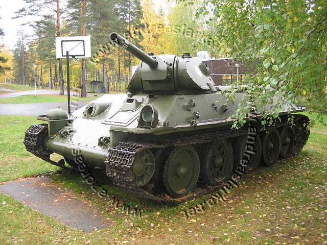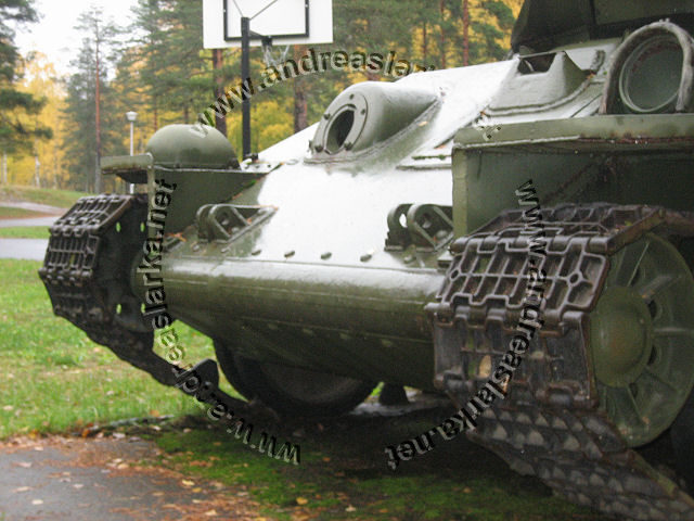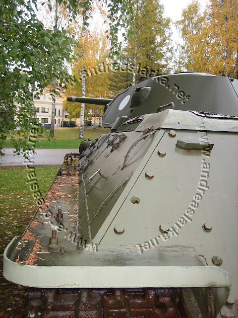 This very early m1941 T-34 is probably the very one used by Mr. Reino Lehväslaiho in the counter-attack at Portinhoikka in June 1944. The victory-markings painted at the gunbarrel are therefore real.
