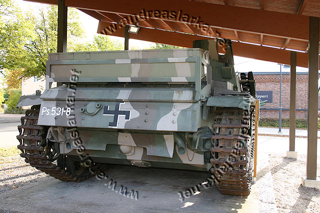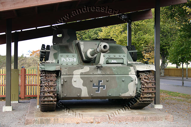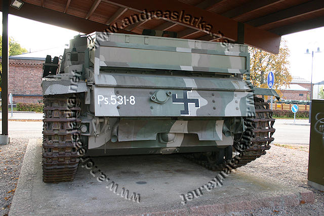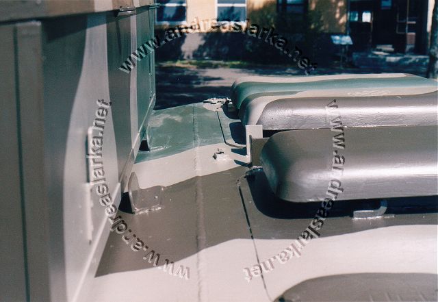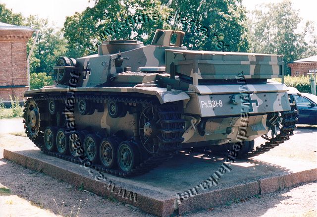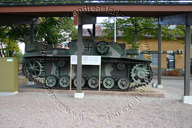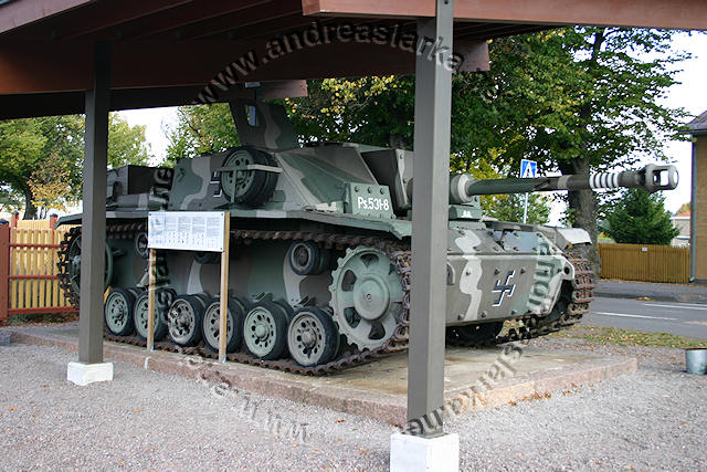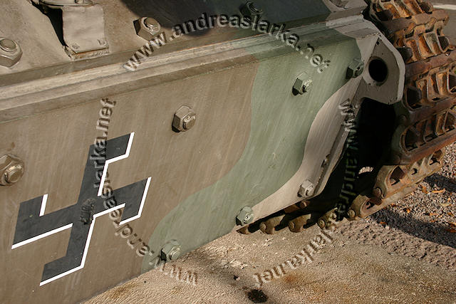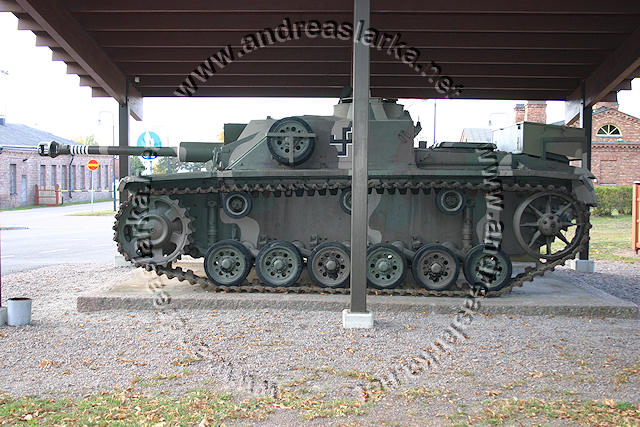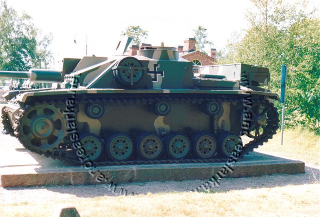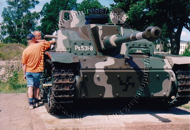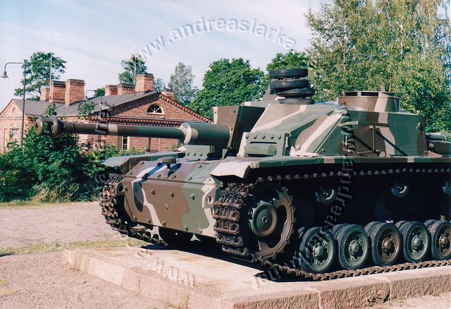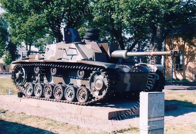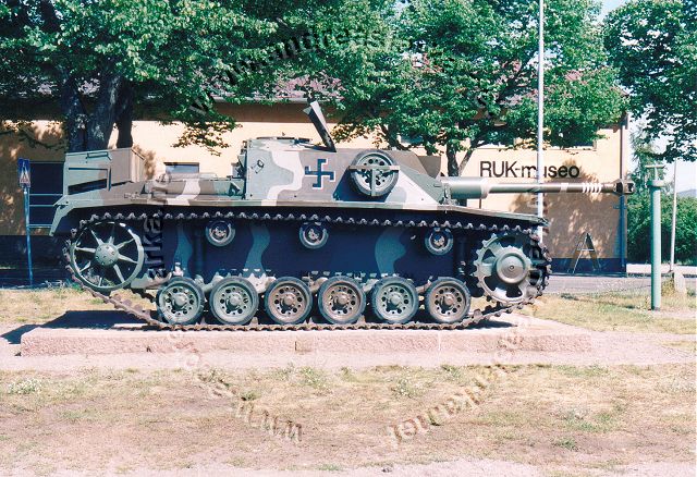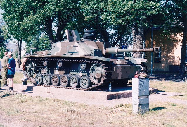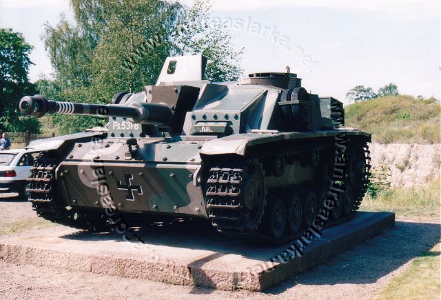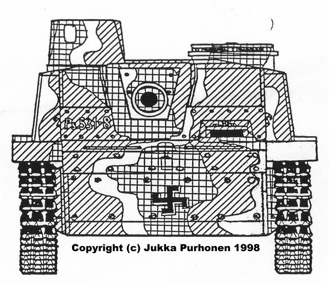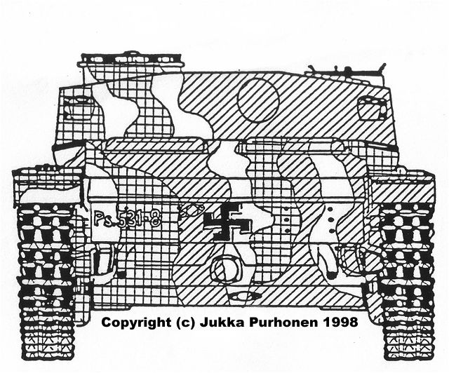 ![]() This MIAG-manufactured StuG's have been restored to it's war-time condition, including a replica of the rear eqipment box and the original paint-scheme. The work have been supervised by Mr. Jukka Purhonen, co-writer of the book "The Finnish armoured vehicles 1918 - 1997". The colour-shades used have been developed according to the research done by Esa Muikku & Jukka Purhonen and are as close to the war-time colours as you can get with modern paint. The restore and repainting was made in 2003 (pictures below) and now, 10 years later, I finally made a new trip to Hamina to see how Aili is doing today. A roof have been built on top of her, and she still is in a very nice condition! The color-drawing is made by humble old me and is based on the (modified) instructions found in Tamiya's kit no 35197 and of course on Mr. Purhonens drawings mentioned below. Photos and text © Copyright by Andreas Lärka, Finland.