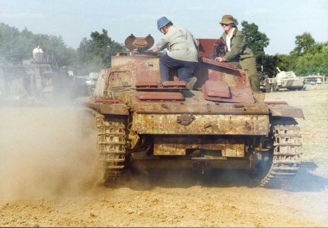 ![]() This vehicle is probably also known as "Bob Fleming's StuG". When it served in the Finnish Army it had the registration-number of "Ps.531-16". Now the vehicle has been sold to: Jacques Littlefield, The Military Vehicle Technology Foundation, Portola Valley, California, U.S.A. The StuG is restored to the original German colour-scheme and the condition it was in when arriving in Finland in 1943. Well, except for the gun's travel lock, which in this particular case is a Finnish post-war addition, and the Schürzen brackets ("teeth") that are of a later model than the ones originally attached to this StuG. The pictures in the first half of the page are taken by Mr. Bob Moore at the MVPA International Convention, San Jose, California, June 24th - 26th 1999 and at The Military Vehicle Technology Foundation, Portola Valley, California, U.S.A. The pictures in the second half of the page are taken by Mr. Bob Fleming himself. Showing the StuG in different stages during the restoring. Photo copyrighted © by Mr. Bob Moore and by Mr. Bob Fleming. All rights reserved. Used with permission.