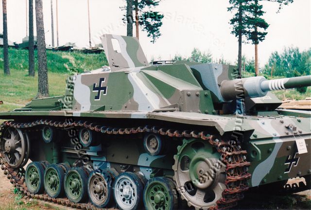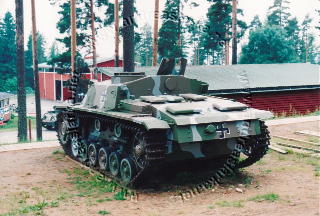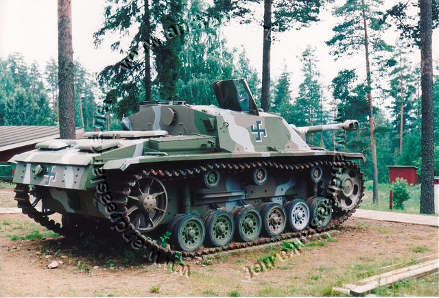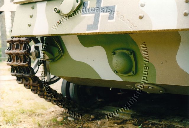 ![]() This MIAG-manufactured StuG is the very first Finnish StuG that fired at and destroyed Soviet Armour during the hard battles in the summer of 1944. Repainted in a made up wartime-like colour-scheme and featuring some late-war and post-war additions.. These pictures are taken at the Finnish Armour Museum in Parola, Finland. Photos and text © Copyright by Andreas Lärka, Finland.