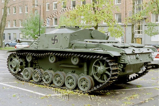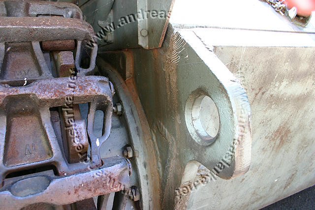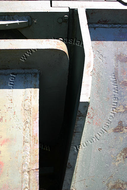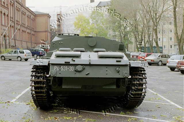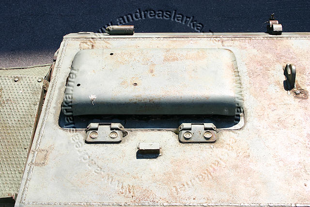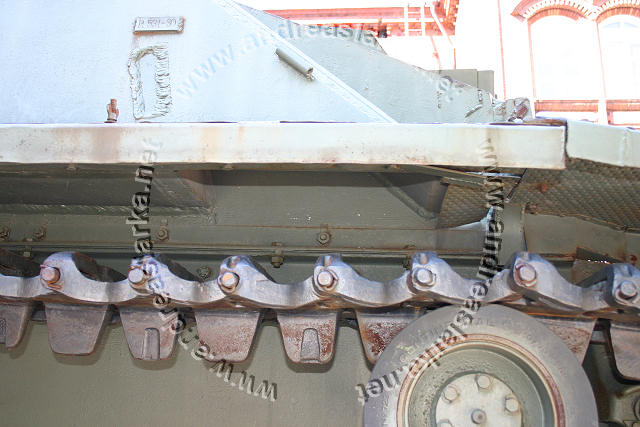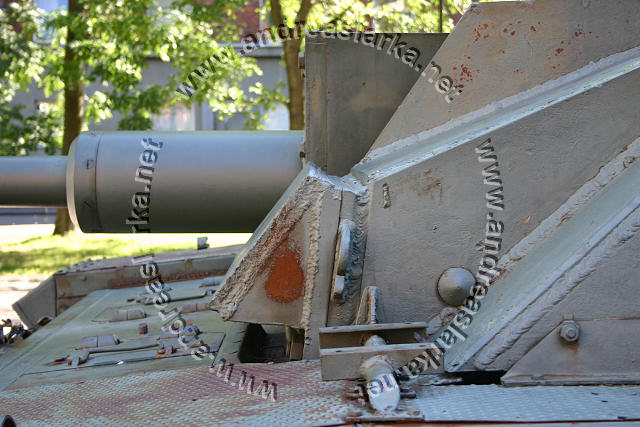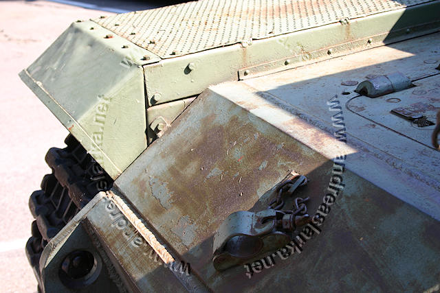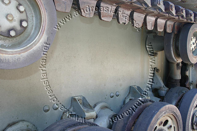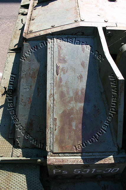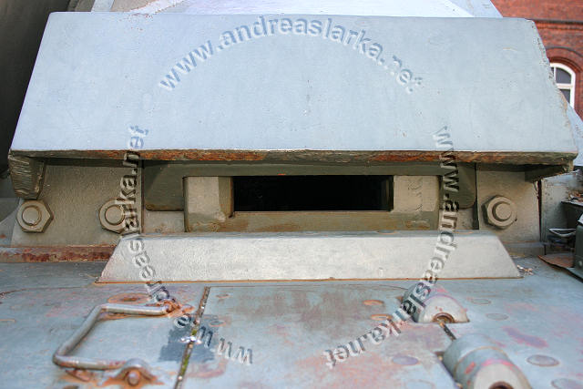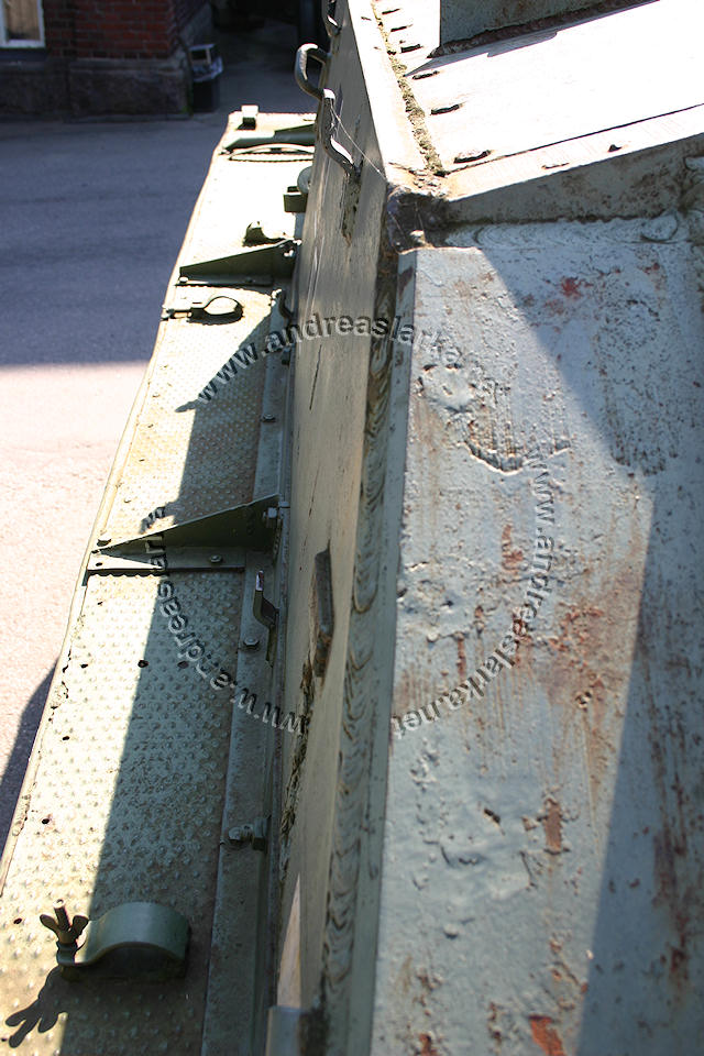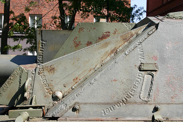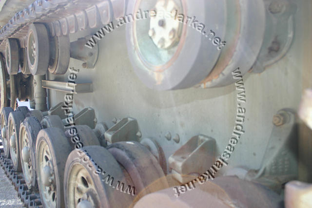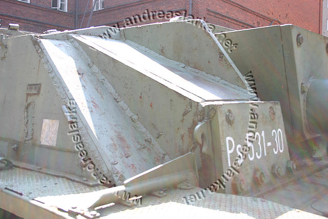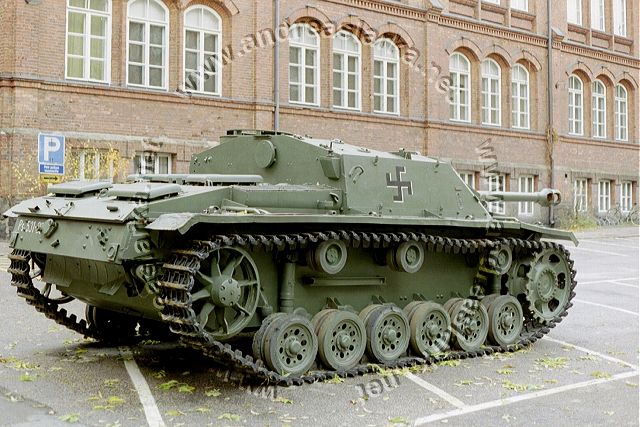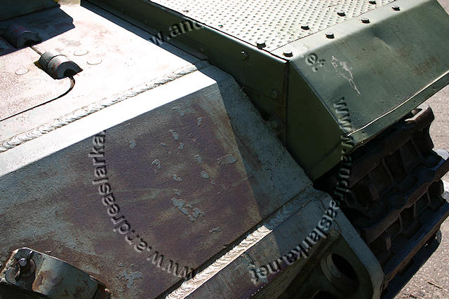 This tank is the very last of the 1943 batch of StuG's that arrived to Finland. The tank is a production mish-mash with a late interlocked-welded substructure and an earlier "straight-welded" superstructure. The vehicle was produced in the fall of 1943. During the war this vehicle served as a training vehicle. It did not have it's spare wheels moved to the sides of the fighting compartments as Finnish Sturmis typically have. It sports the Finnish made deflector for the commander's cupola and remains of extra armour in front of the loader.