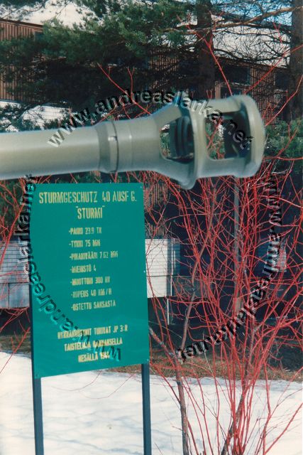 The StuG is beautifully restored into the configuration it had during / after the hard battles in the summer of 1944. Re-Zimmerited, concrete beside the gun, logs beside the fighting-compartment, armour-plates on the sides of the lower hull and extra track-links at the front. The StuG have also received a light overspray of green just like it had back then. Pictures via Mr. Kari Tapio taken at the Karjalan Prikaati -garrison in Vekaranjärvi, Finland.
