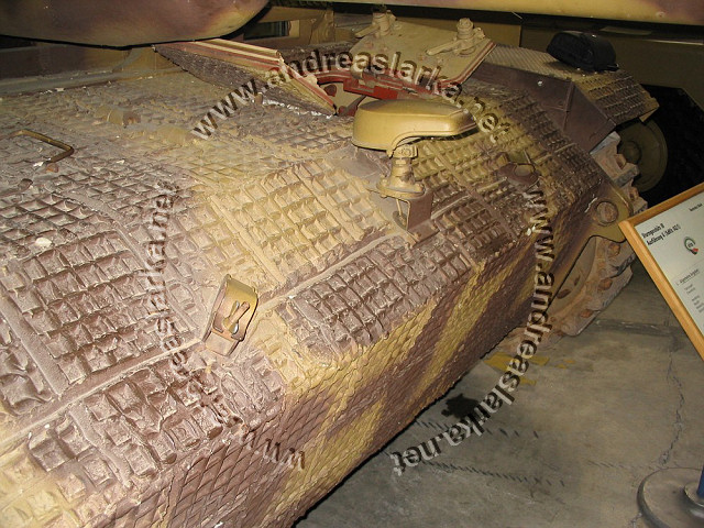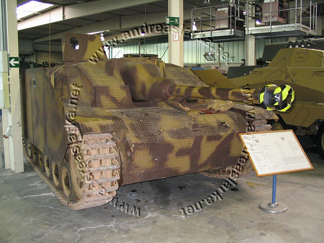 When this StuG served in the Finnish Army it had the registration-number of "Ps.531-39". Located at the Wehrtechnische Studiensammlung des Bundesamtes für Wehrtechnik und Beschaffung, Mayener Str. 85-87, 56070 Koblenz (Lützel) in Germany. The StuG is restored and in a running condition. Repainted to the original 1944 German colour-scheme, re-zimmerited but some Finnish post-war additions are still present. Photos copyrighted © by Mr. Bob Grimster. All rights reserved. Used with permission. Text by Andreas Lärka, Finland.