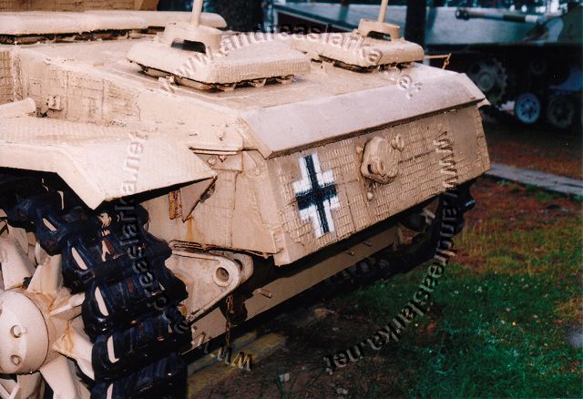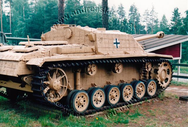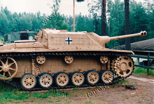 This Alkett-manufactured StuG is 'rezimmerited' and repainted in the German colours it had upon arrival in Finland in 1944. These pictures are taken at the Finnish Armour Museum in Parola, Finland. Photos and text © Copyright by Andreas Lärka, Finland.
