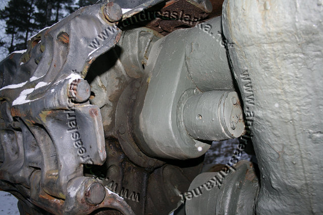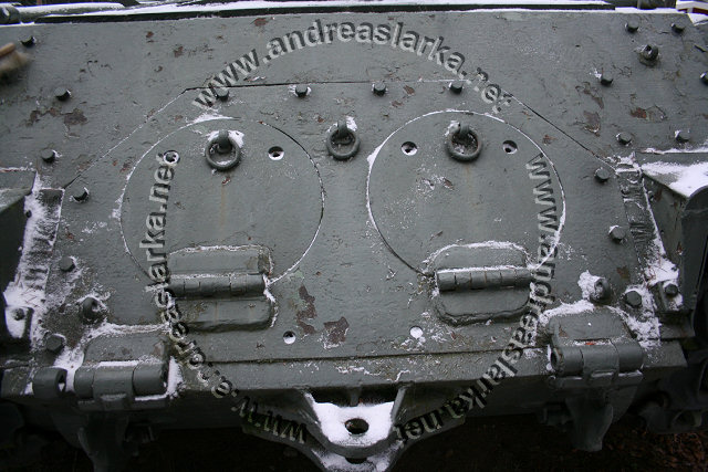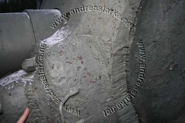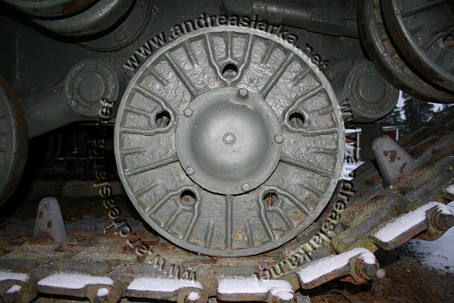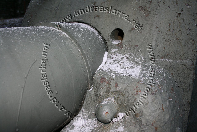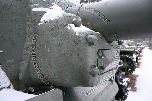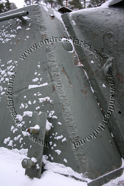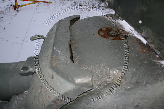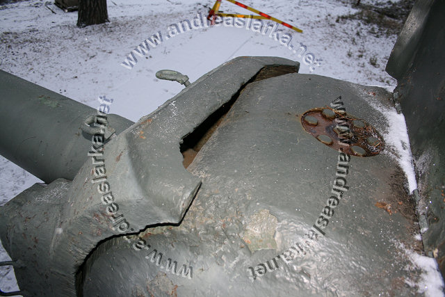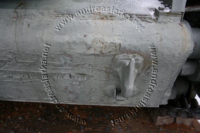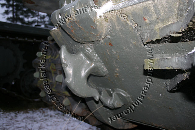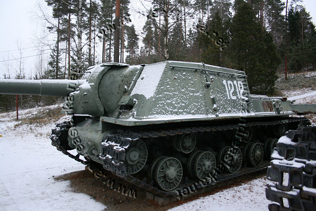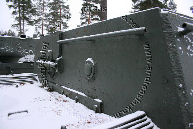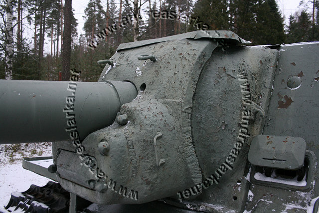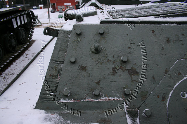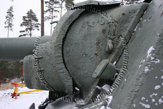The Finnish Armed Forces captured two Soviet-made ISU-152 assaultguns during the summer of 1944. One was lost a few days later, but the other one - this very one - was sent to Varkaus for repairs. The assaultgun didn't see saw any more action during the war, but was used as a recovery vehicle after the war. When serving as a recovery vehicle the gun was removed and the large Finnish-made exhaust-pipes were added. Upon capture the ISU was marked "1212". During the latest repaint in the Parola Armour Museum another number, "92-31", was discovered under the layers of paint. This number was overpainted already during the war and has now been uncovered for the first time since! In 2006 I wrote an article about the Finnish wartime use of these assaultguns. The article is published in the Finnish Mallix -model magazine, issue 1/2006. These pictures are taken by Mr. Heikki Jäntti at the Parola Armour Museum in Parola, Finland. Photos © Copyright by Heikki Jäntti. All rights reserved. Used with permission.
